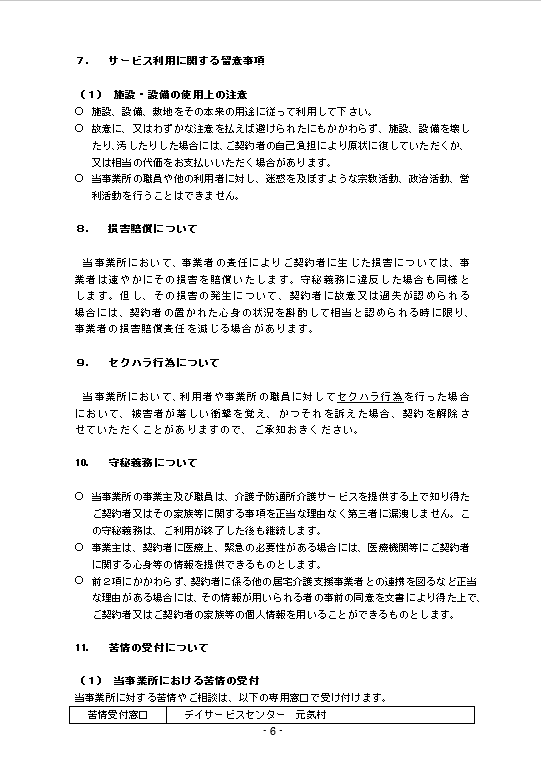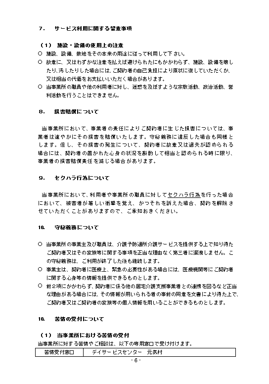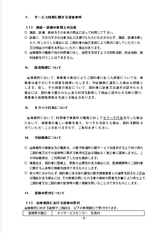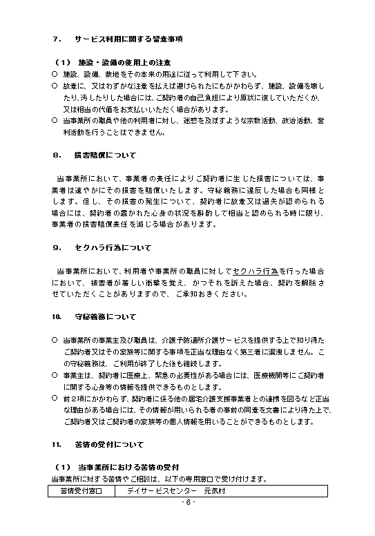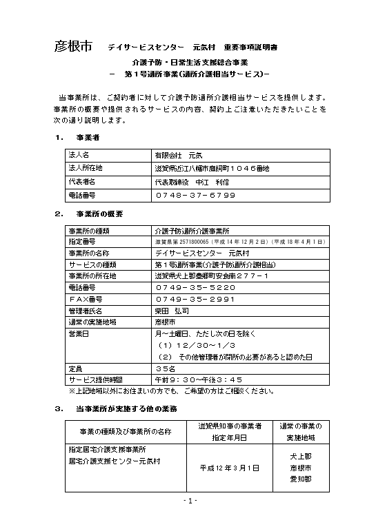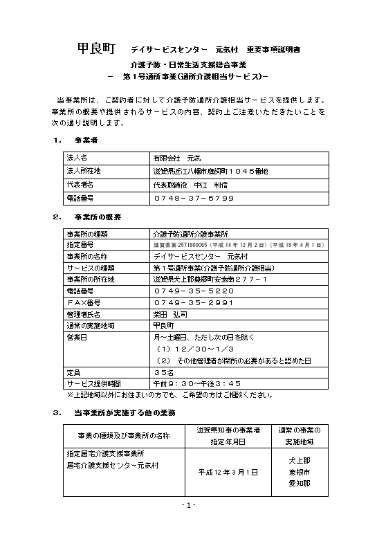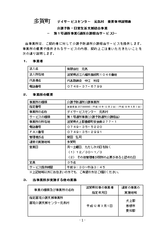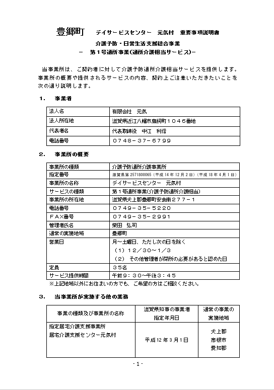 デイサービスセンタ-元気村 予防介護 重要事項説明書
