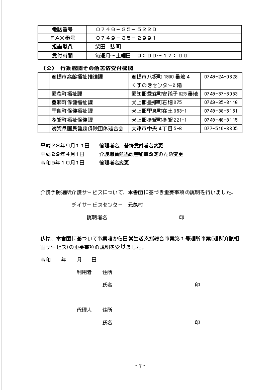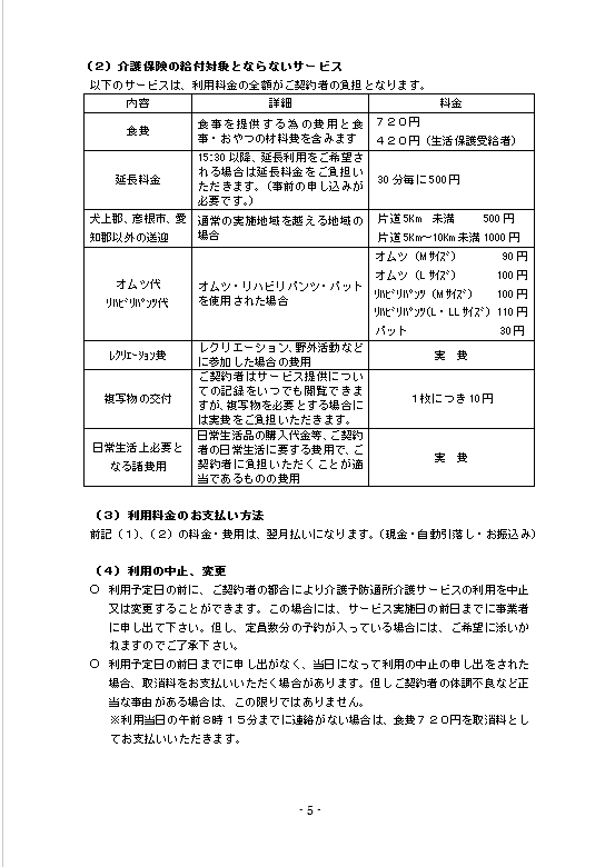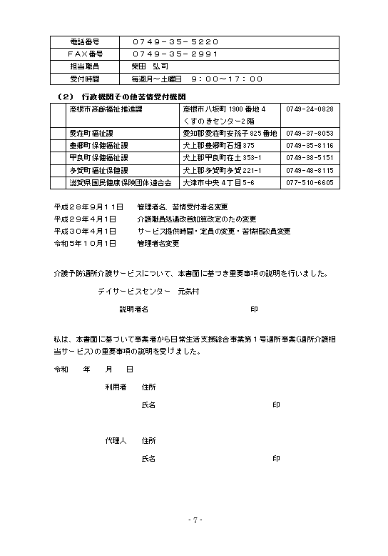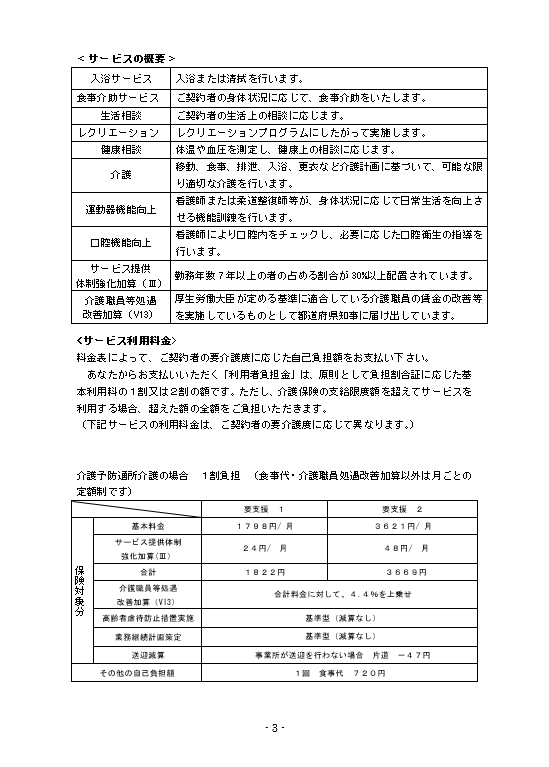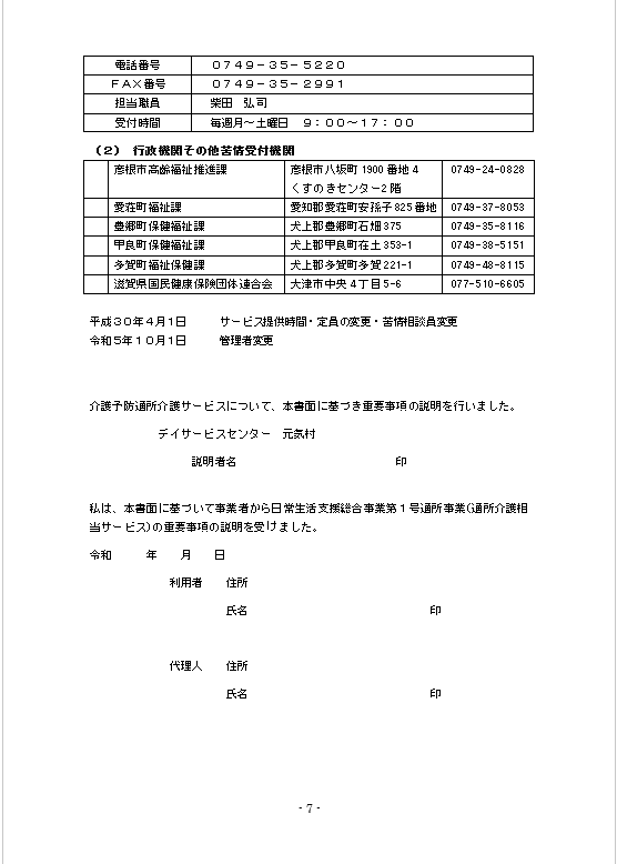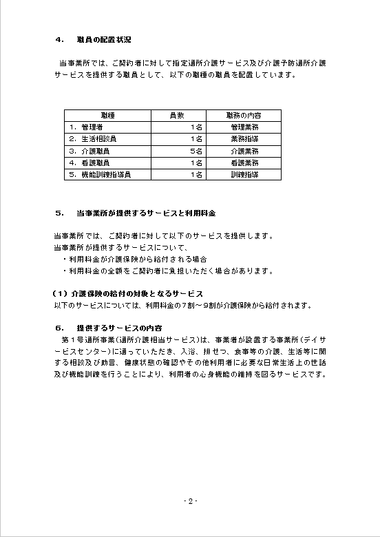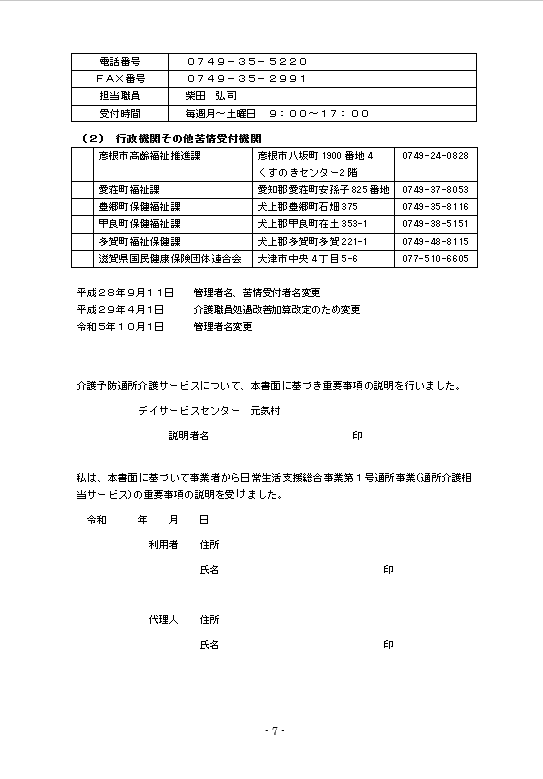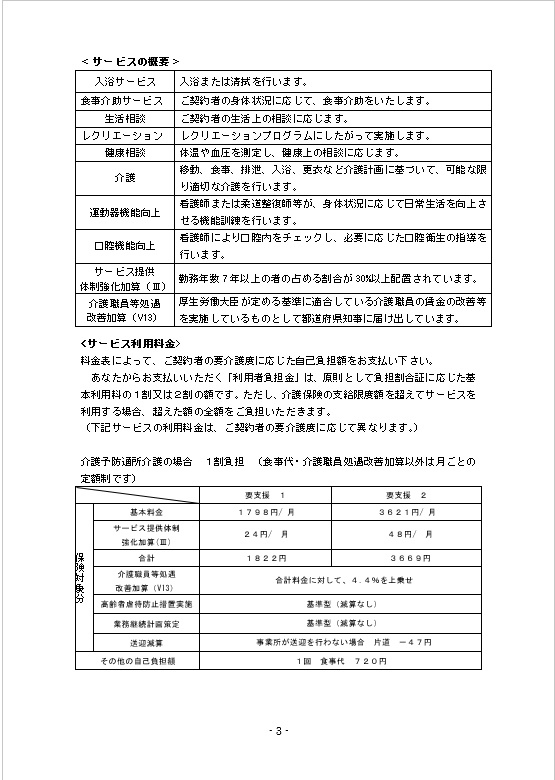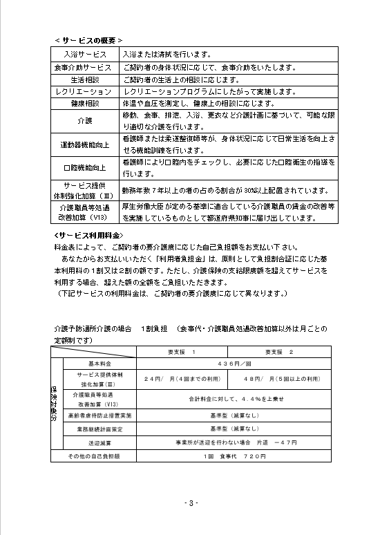 デイサービスセンタ-元気村 予防介護 重要事項説明書